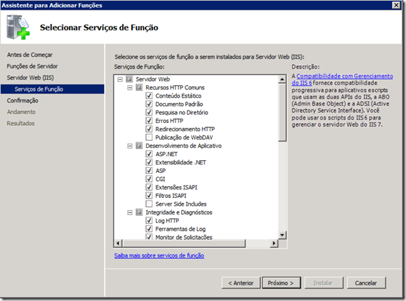 4. Marque o item Servidor Web (IIS) e clique no botão Próximo;